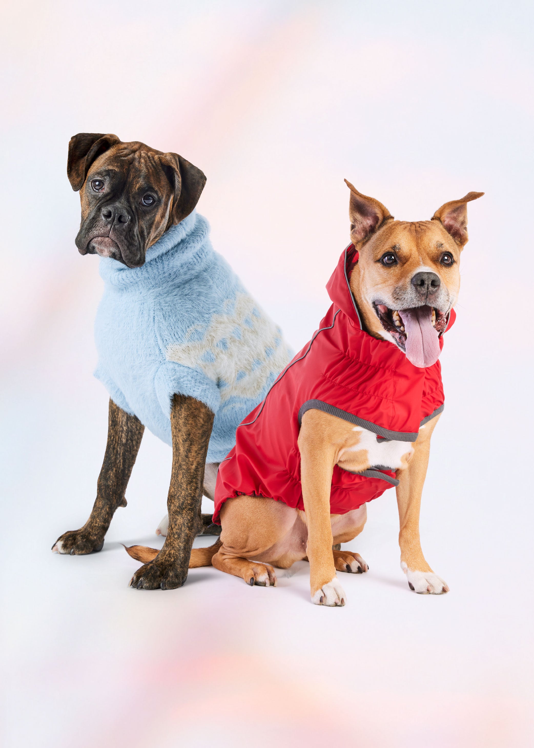 First, I love the " 80s hipster" style of this coat. It is super easy to put on and my dog loves it! It keeps him cozy during his hikes. It has both function and style.
