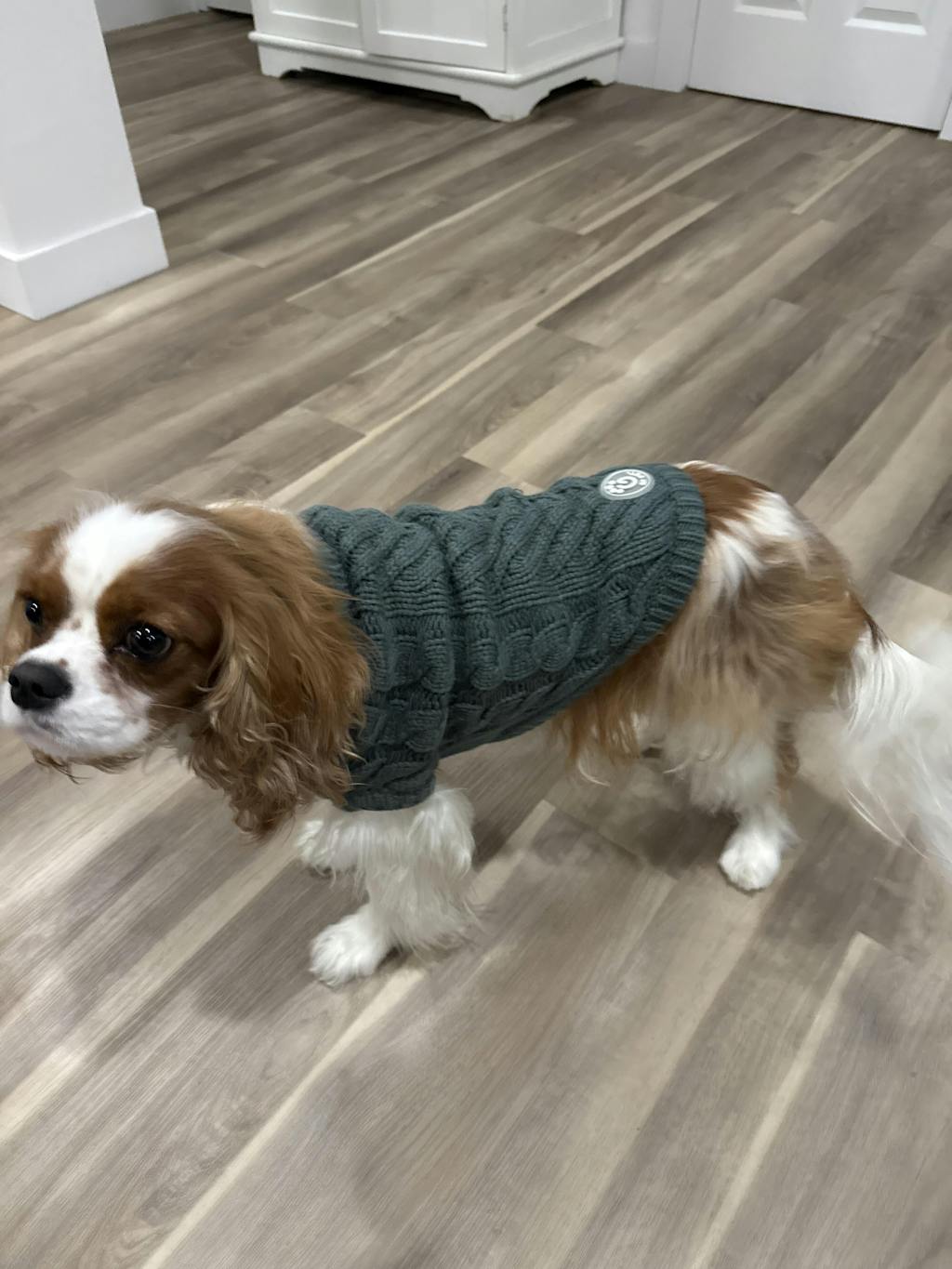 This sweater is great quality! The colour is really pretty! It fits my dog great! For reference I have a 23 pound cavalier King Charles spaniel and the medium fits him perfect.