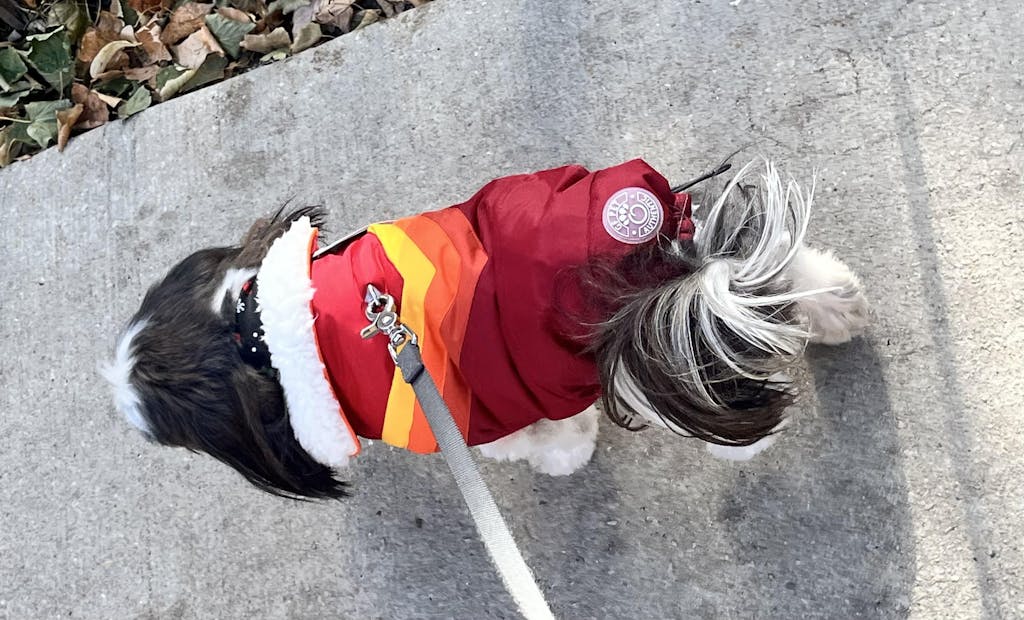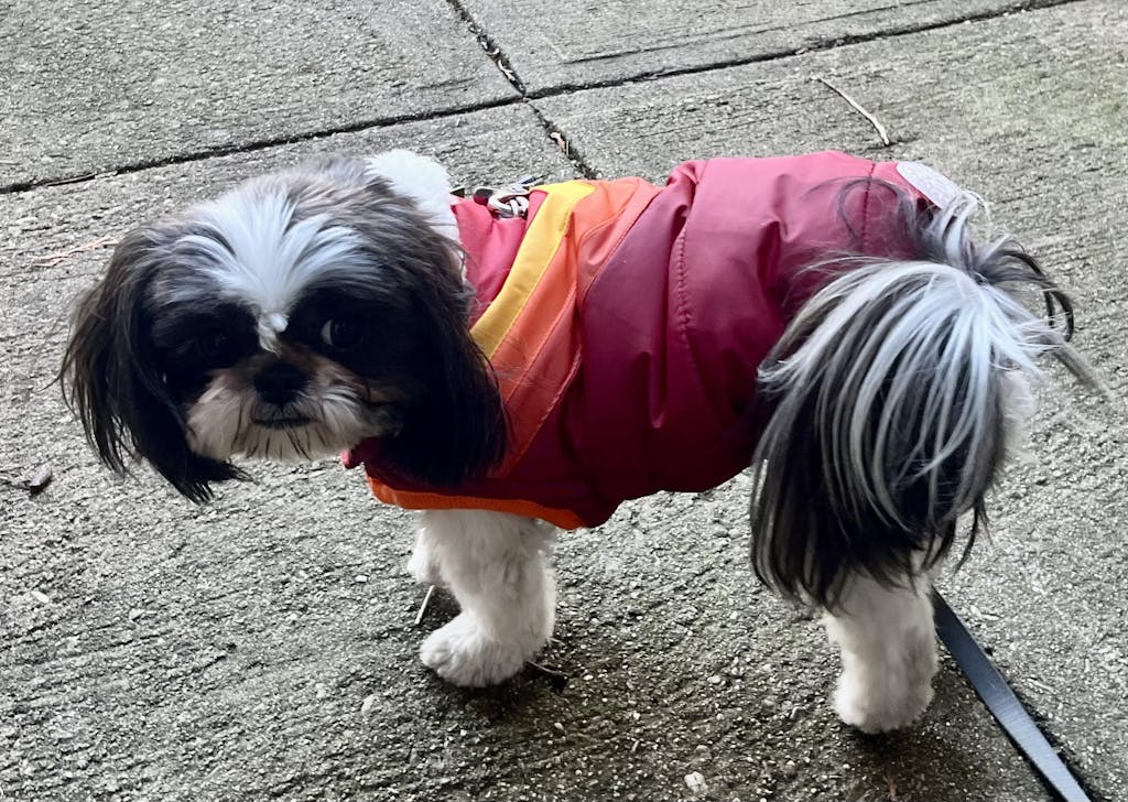 I feel so smart! I ordered this last week, because Spring showers were just around the corner. This jacket fit perfectly and kept our new 5-yr old rescue nice and dry today on our rainy walk.